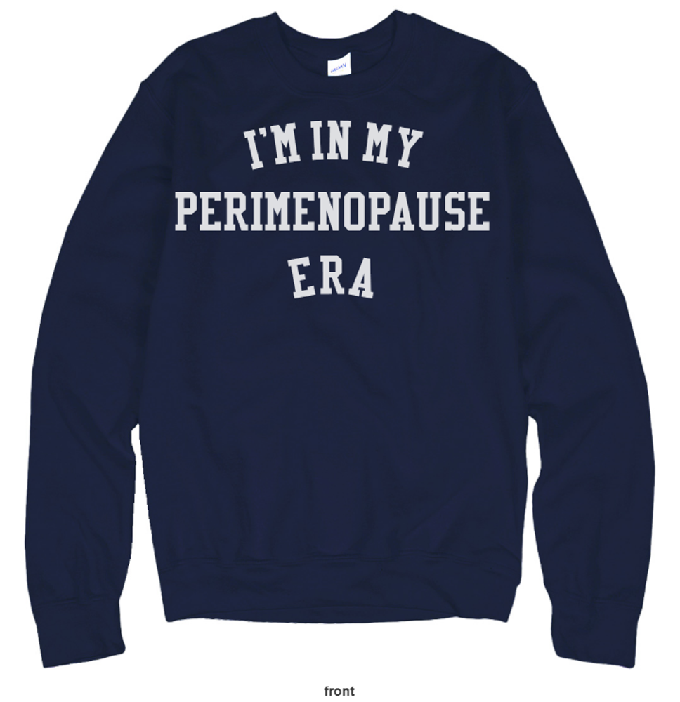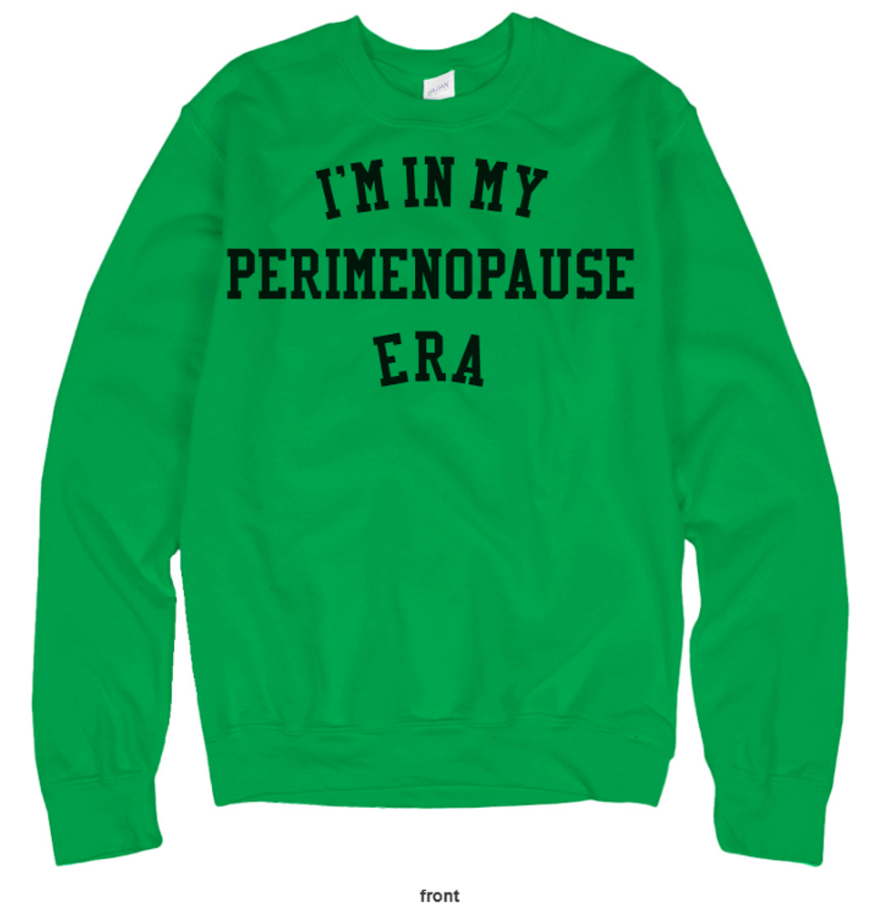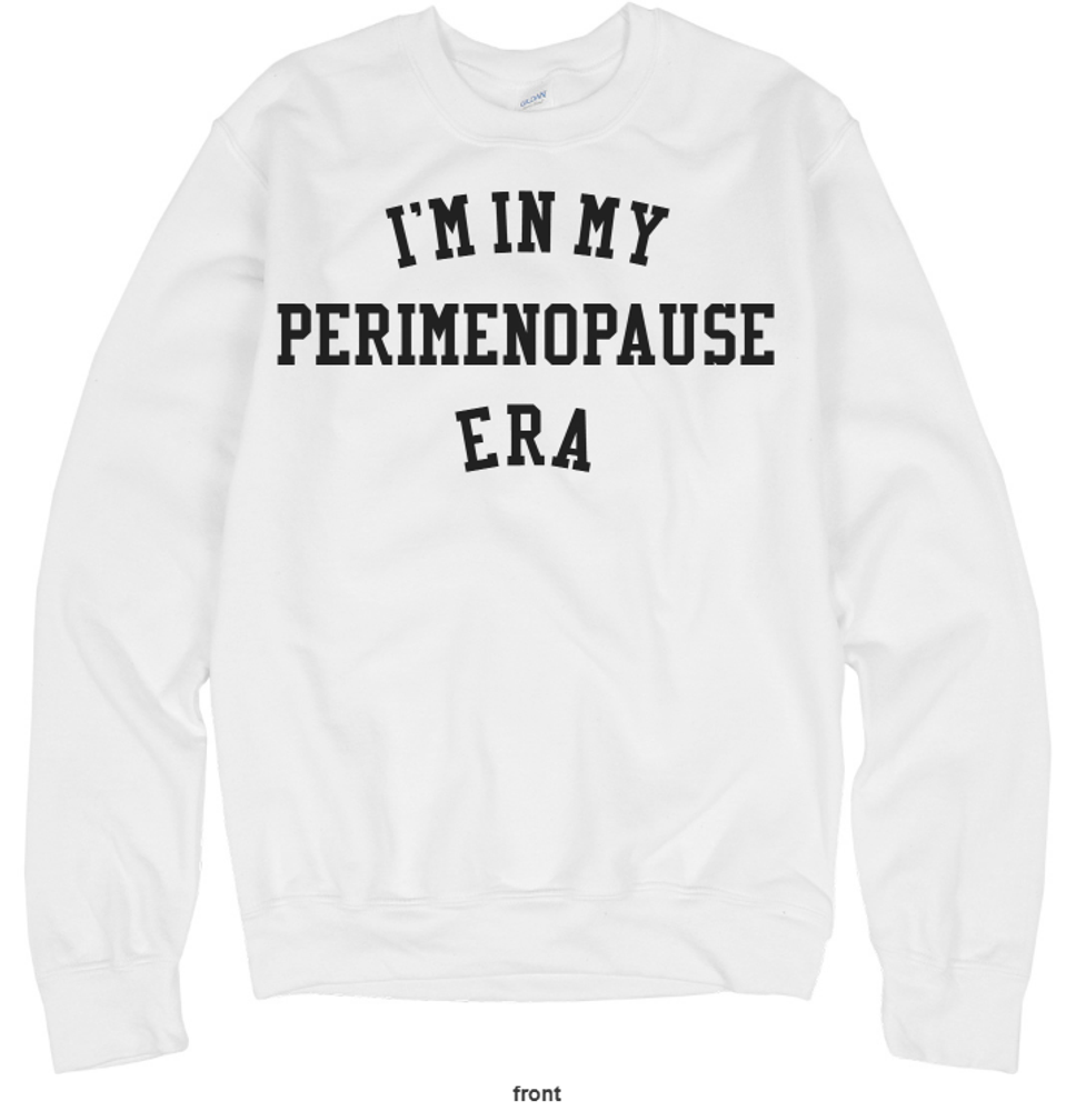 I'm in my Perimenopause Era printed on Full Front and 'The Pause Life logo printed on Back Yoke